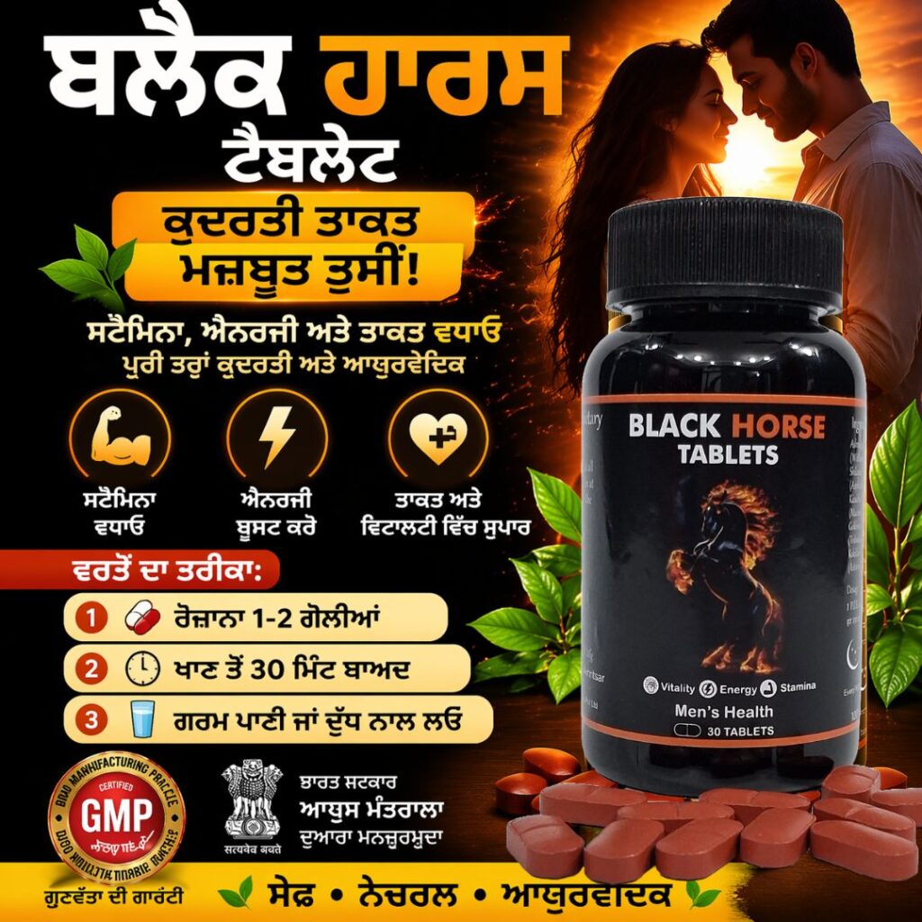 ਮੈਨੂੰ ਦਵਾਈ ਖਾਂਦੇ 1 ਹਫਤਾ ਹੋਇਆ , ਤੇ ਮੈਨੂੰ ਬਹੁਤ ਜ਼ਿਆਦਾ ਫਰਕ ਲਗਾ , ਜਿਹੜੇ ਵੀ ਮੇਰਾ ਵੀਰ ਸੈਕਸ ਪ੍ਰੋਬਲਮ ਤੋਂ ਪ੍ਰੇਸ਼ਾਨ ਹਗਾ ਉਹ ਇਹ Black Horse Tablet ਪ੍ਰੋਡਕਟ ਜਰੂਰੀ ਵਰਤੋਂ , ਮੈ ਤਾ ਆਪਣੇ ਯਾਰਾ ਨੂੰ ਵੀ ਲੈ ਕੇ ਦਿਤੀ ਆ